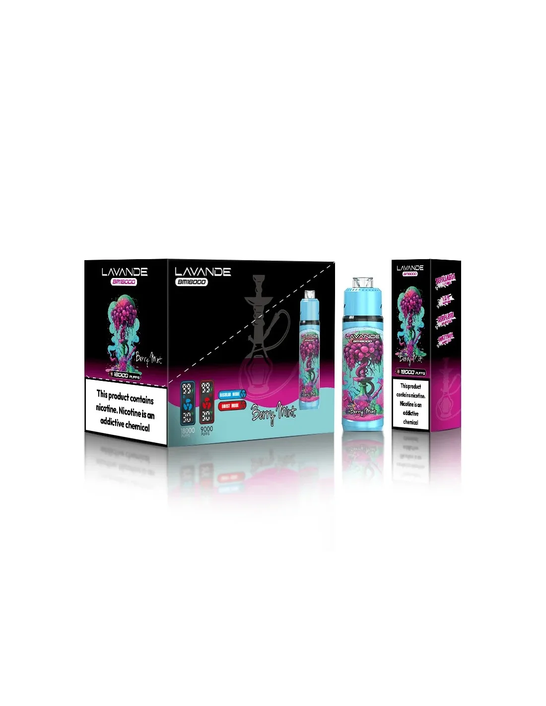 Découvrez la puff BM18000 à la saveur intense de baies et menthe de la marque LAVANDE. La particularité de cette puff est sa capacité exceptionnelle de 18000 bouffées pour un plaisir intense et durable.